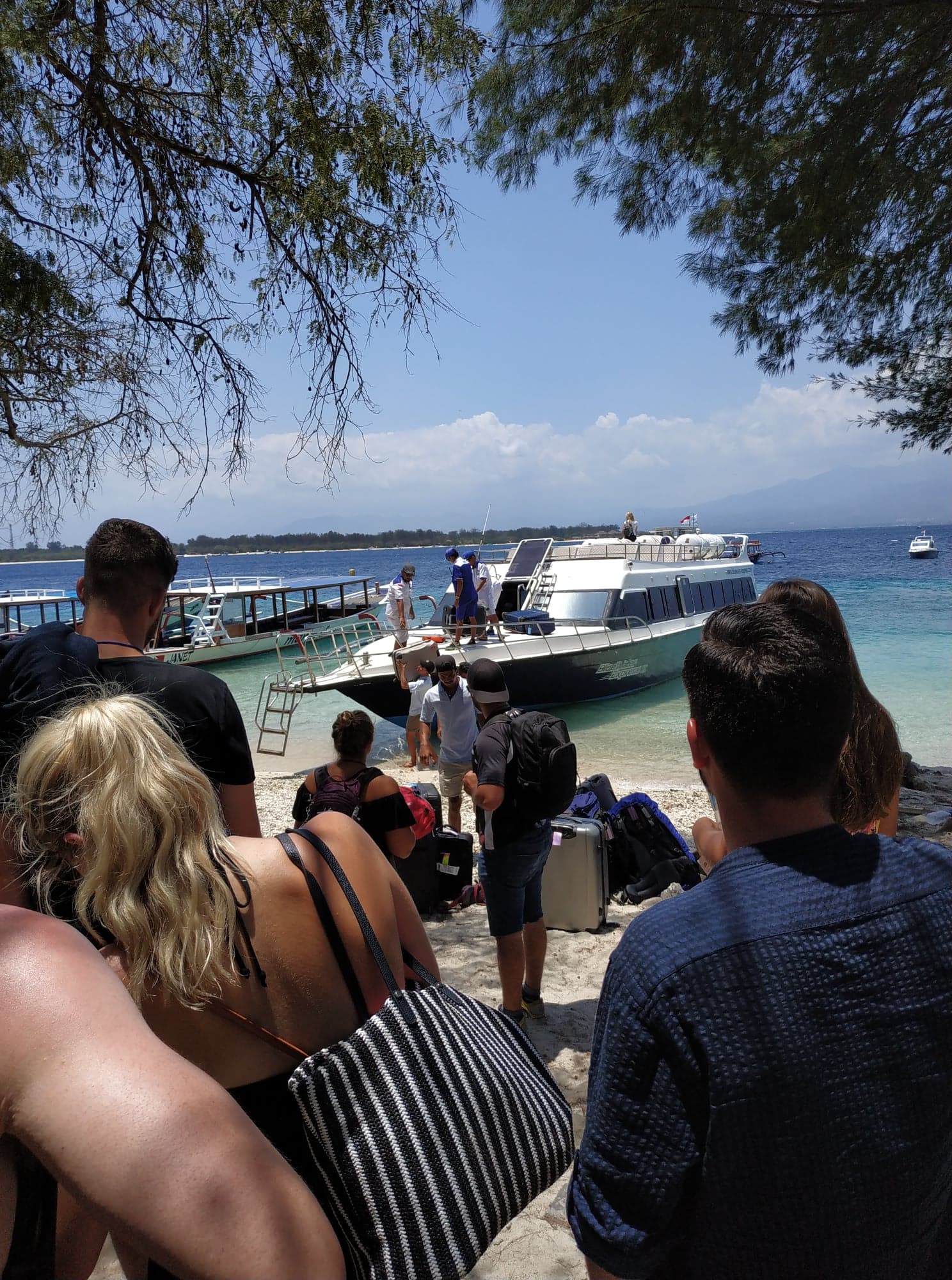 Dès votre arrivée sur Gili Trawangan, un escalier est dressé pour faciliter la descente sur la plage sans vous mouiller les pieds. Les bagages sont remis rapidement.