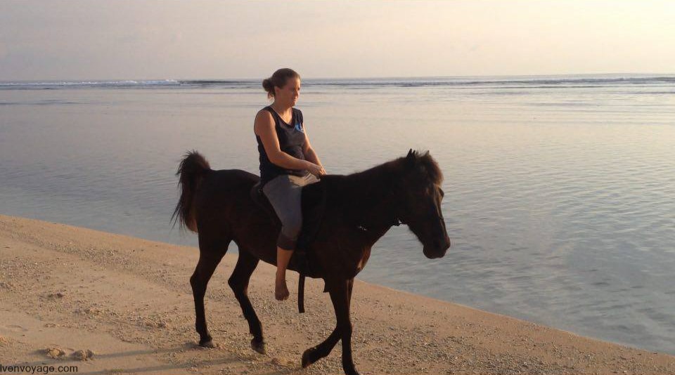 Pour ceux qui aiment l’équitation, vous pouvez vous rendre dans un centre équestre de l’île et ainsi faire une balade à cheval sur la plage au lever ou coucher du soleil. La vue est magnifique et il y fait moins chaud. Le cheval est bien équipé, en revanche vous, non. Aucune tenue n’est conseillée (donc les touristes chaussent les étriers en tongs) et les bombes (casques) n’existent pas … Vous avez aussi le choix de faire la ballade à cru (sans la selle) et seul (sans l’accompagnateur).