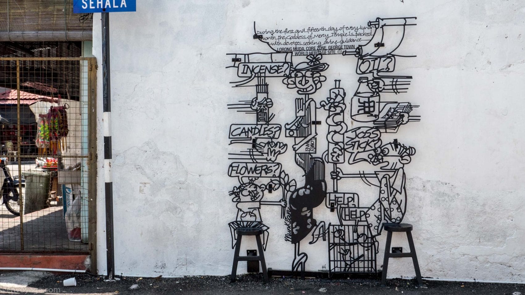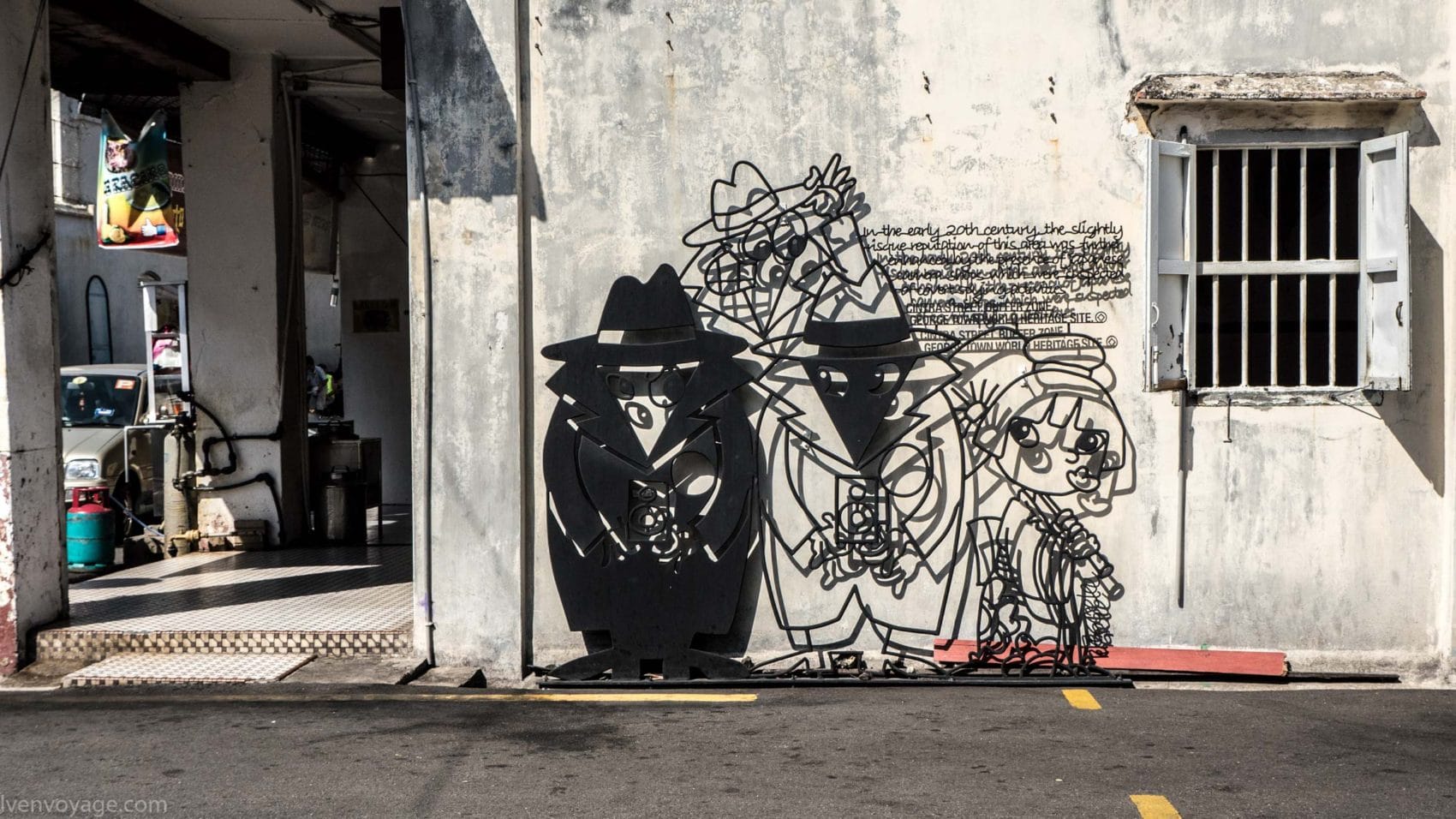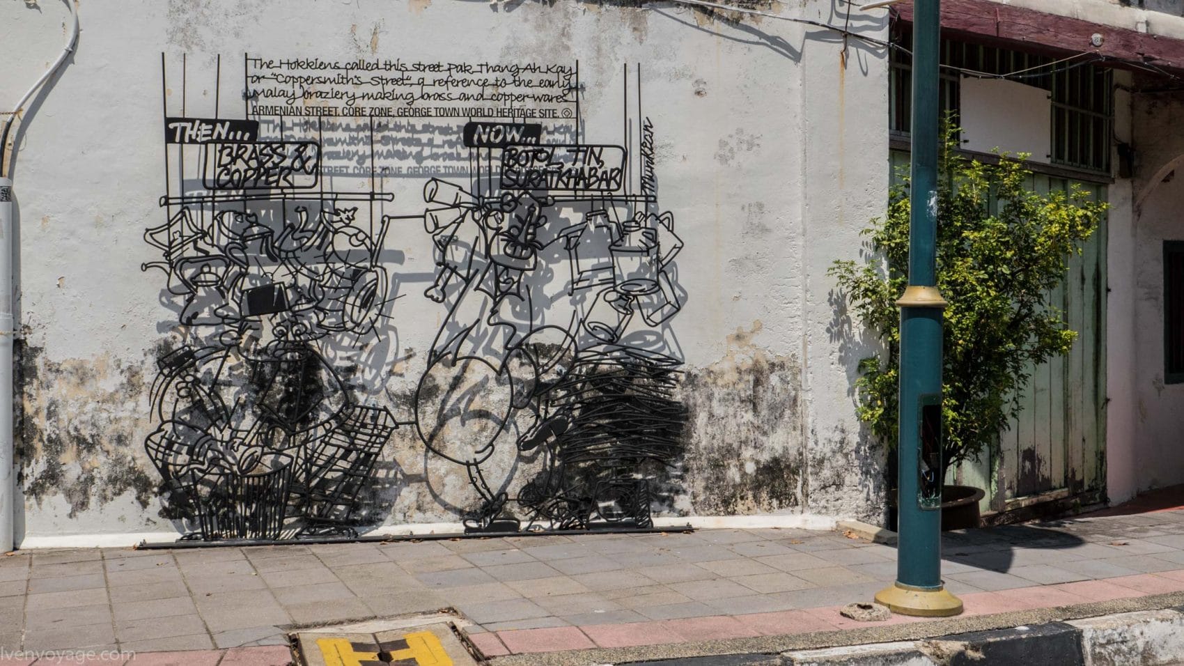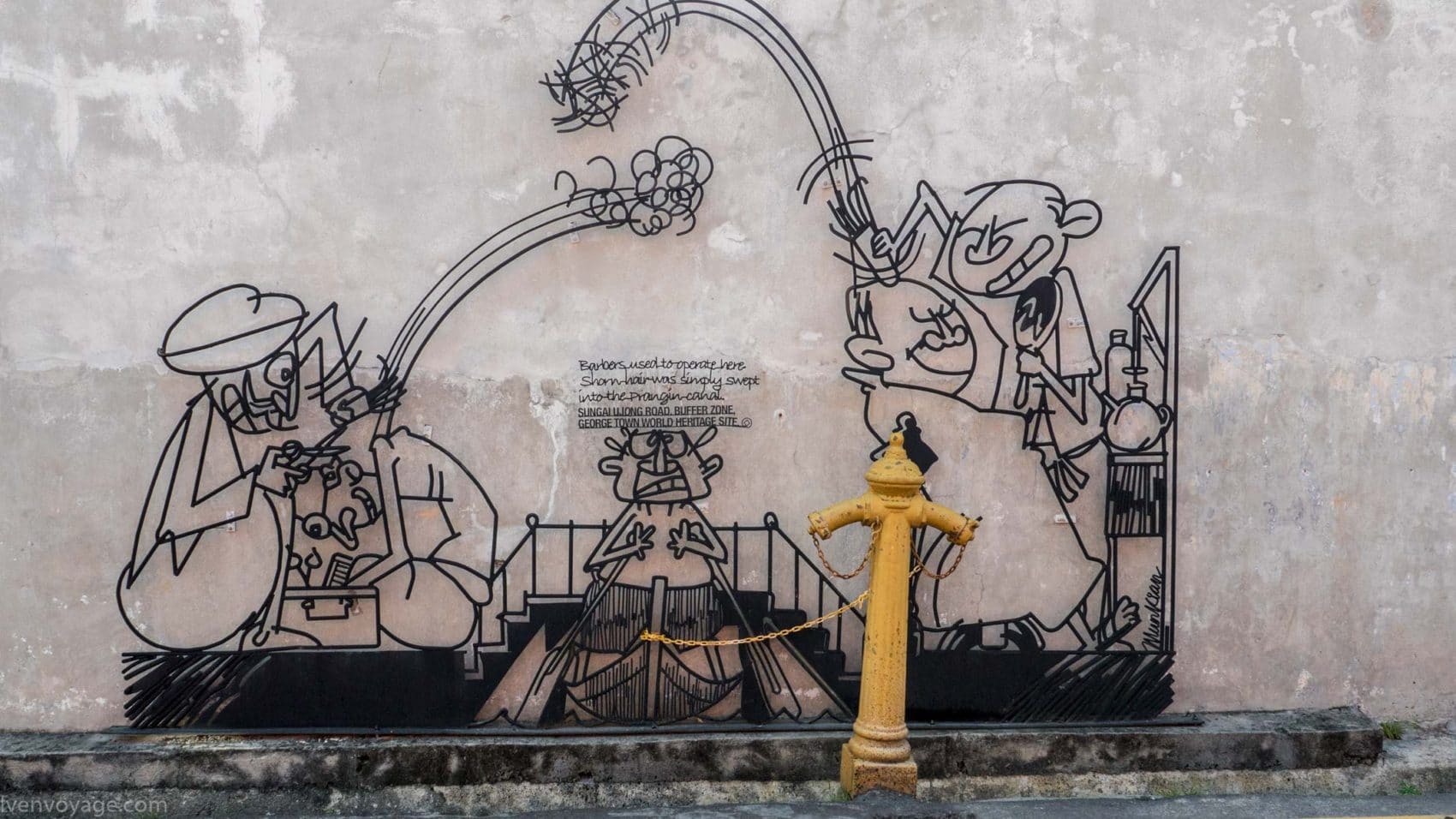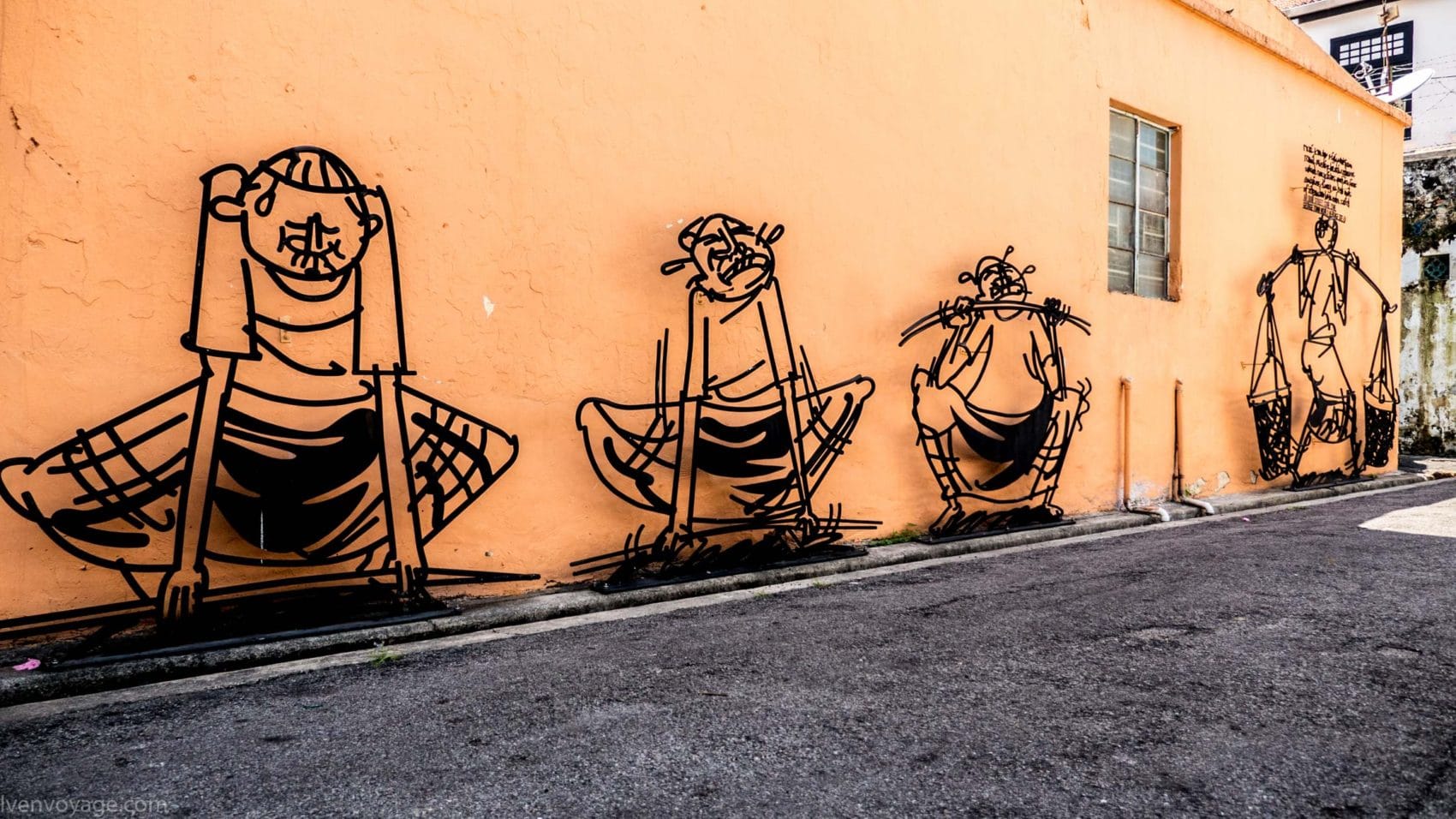 Le 7 septembre 2009, le gouvernement de l’État de Penang a lancé un concours international dans le but de trouver un concept innovant qui égayerait les rues. Parmi les 40 participants malais et étrangers, le studio Sculpture At Work a su se démarquer avec son projet « Voices of People ». Il s’agit de caricatures en fer forgé représentant des scènes de vie de façon humoristique. 52 sculptures ont donc été créées et installées contre les murs des bâtiments.