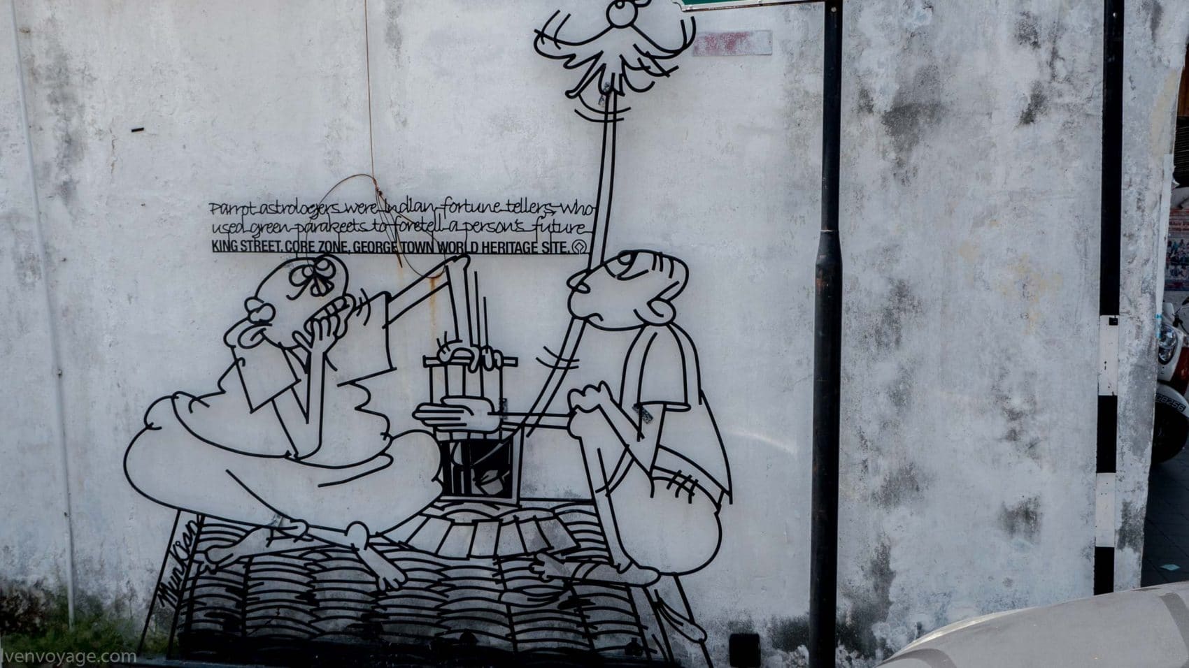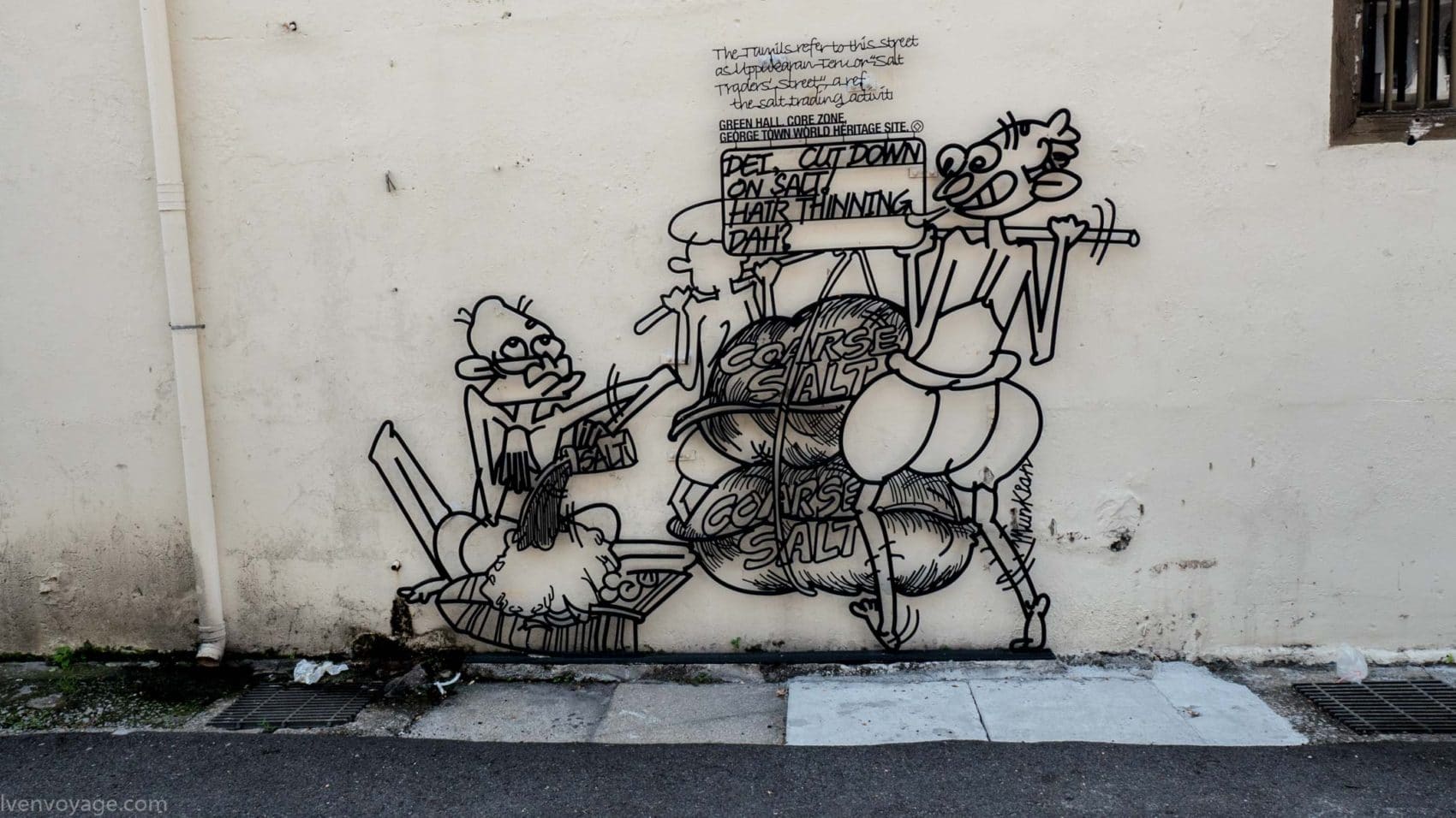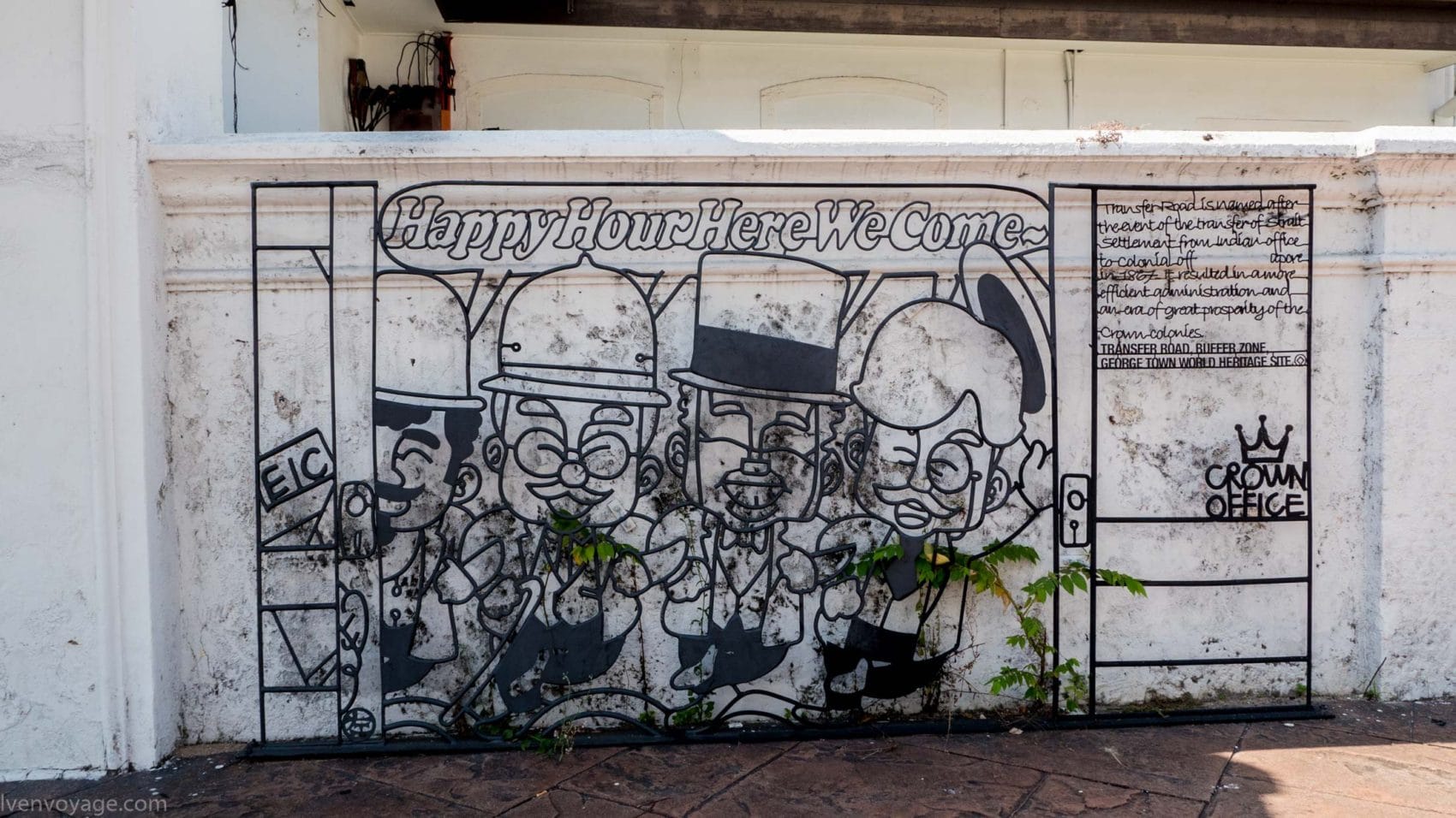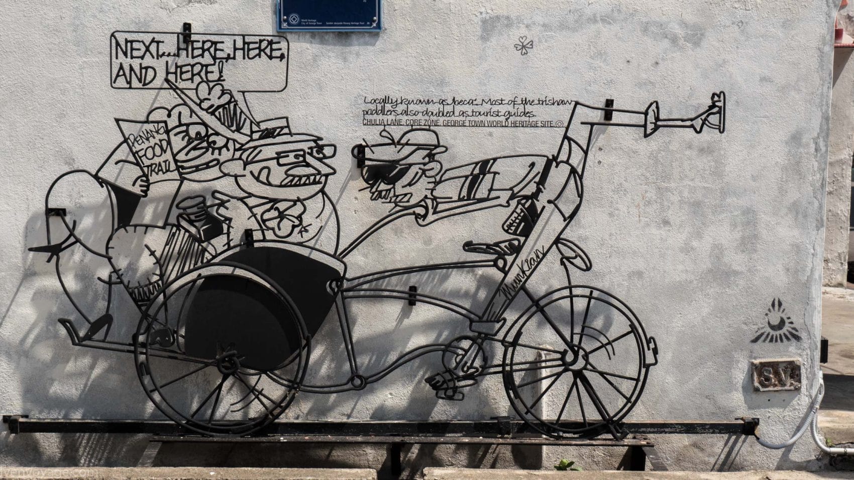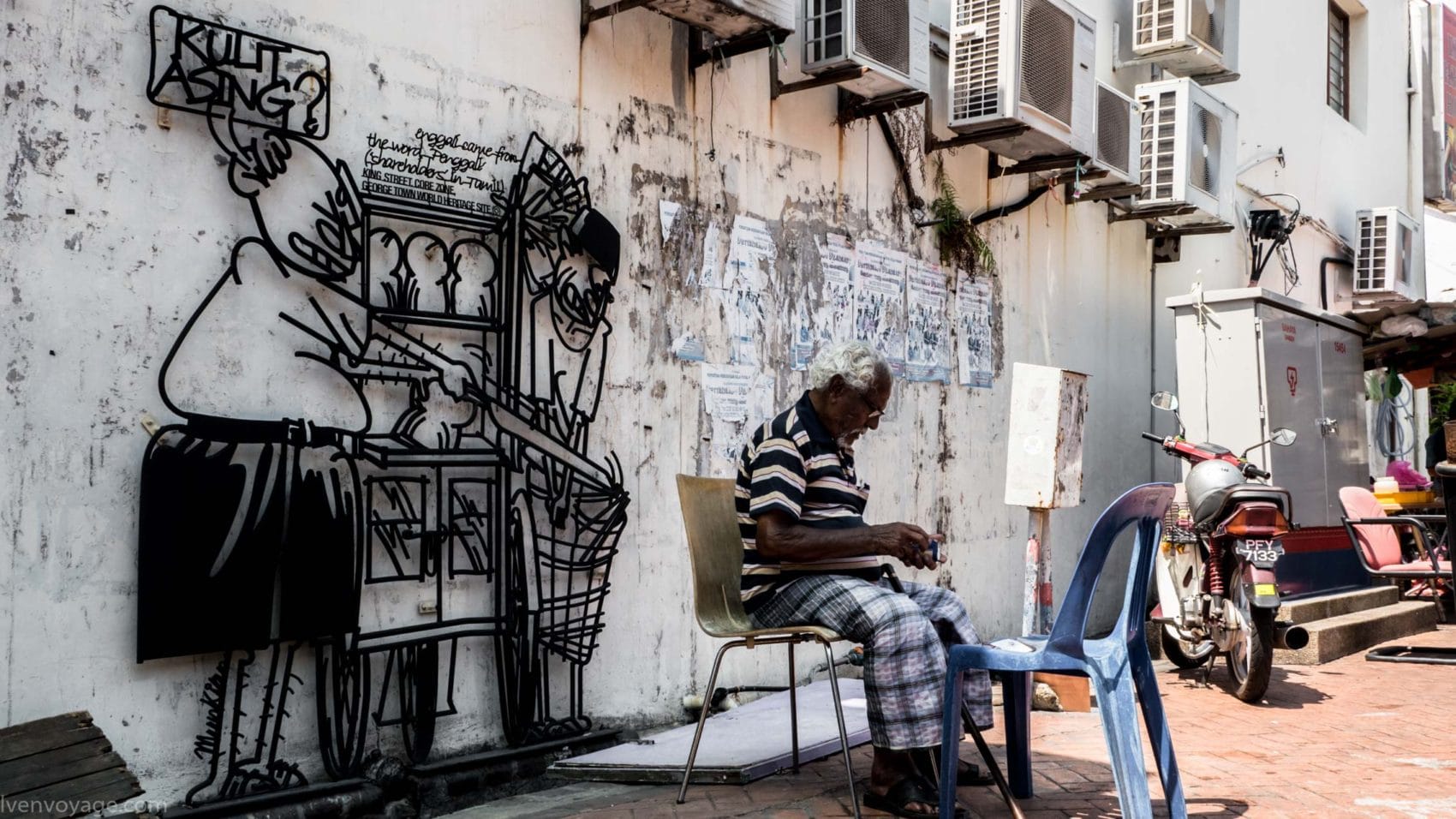 Le 7 septembre 2009, le gouvernement de l’État de Penang a lancé un concours international dans le but de trouver un concept innovant qui égayerait les rues. Parmi les 40 participants malais et étrangers, le studio Sculpture At Work a su se démarquer avec son projet « Voices of People ». Il s’agit de caricatures en fer forgé représentant des scènes de vie de façon humoristique. 52 sculptures ont donc été créées et installées contre les murs des bâtiments.