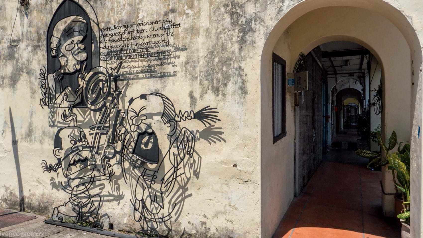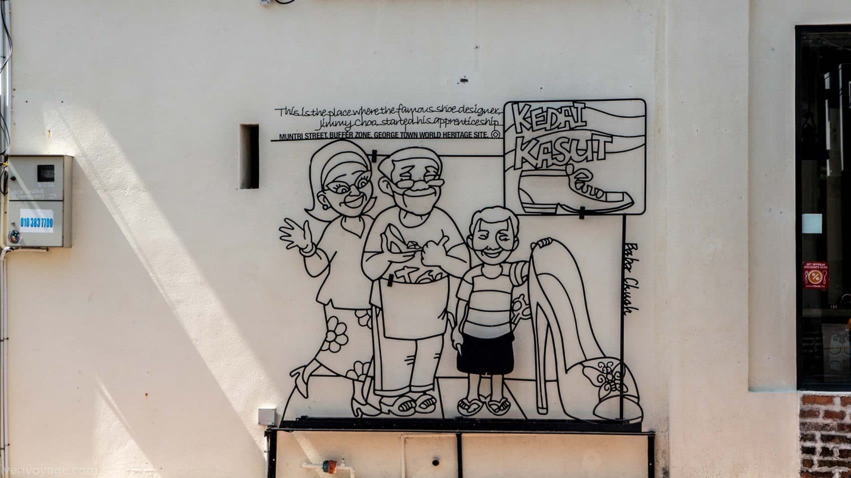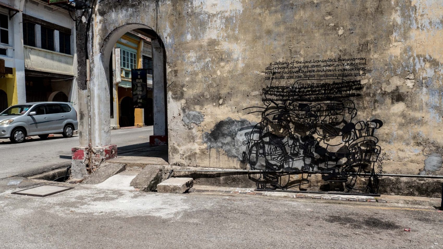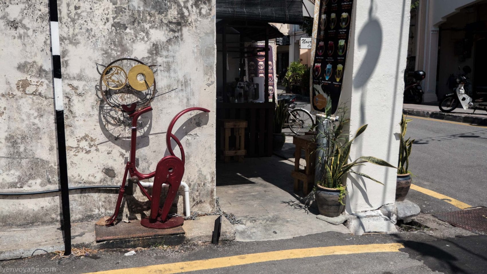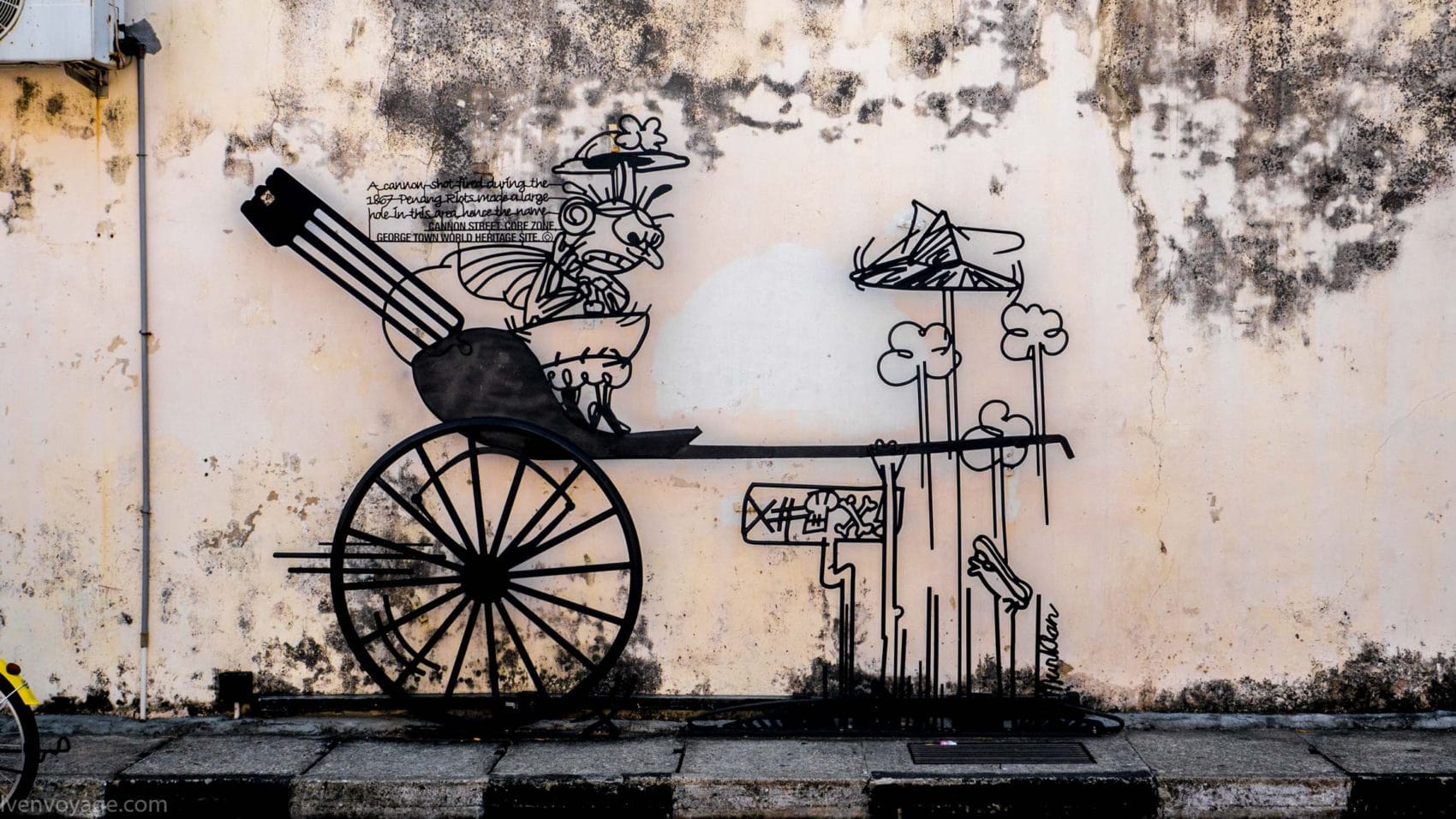 Le 7 septembre 2009, le gouvernement de l’État de Penang a lancé un concours international dans le but de trouver un concept innovant qui égayerait les rues. Parmi les 40 participants malais et étrangers, le studio Sculpture At Work a su se démarquer avec son projet « Voices of People ». Il s’agit de caricatures en fer forgé représentant des scènes de vie de façon humoristique. 52 sculptures ont donc été créées et installées contre les murs des bâtiments.