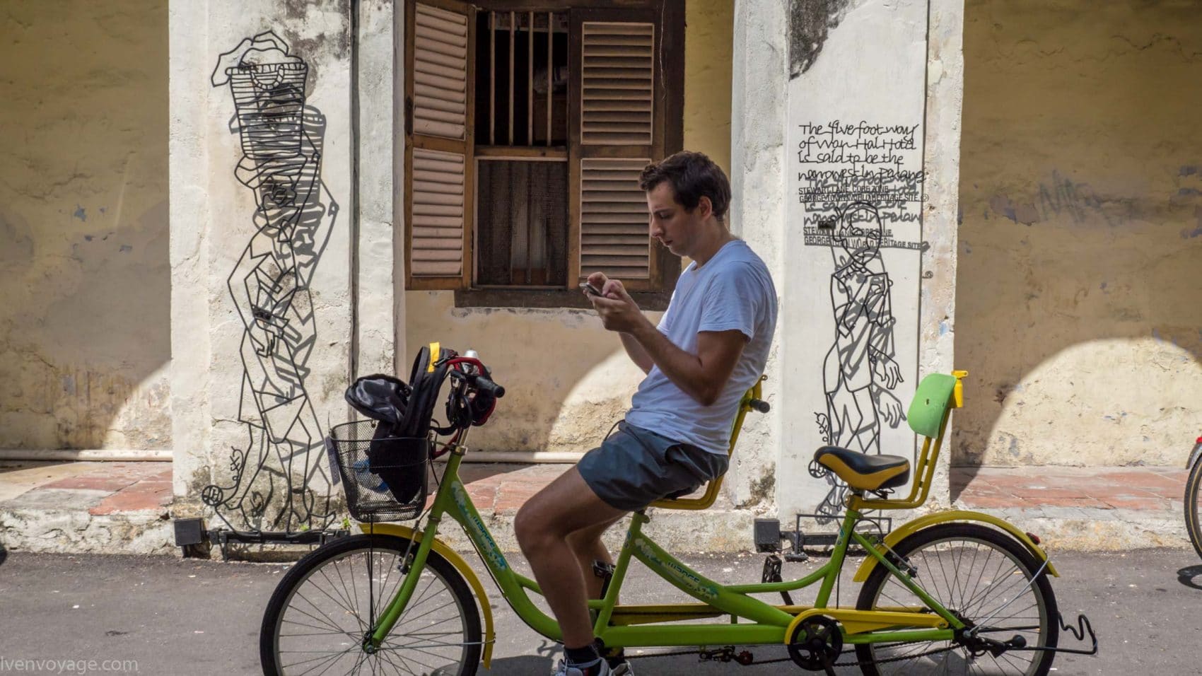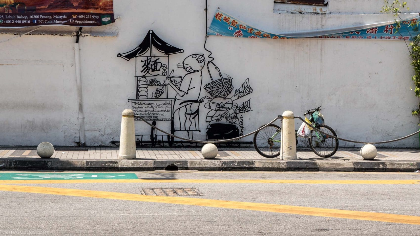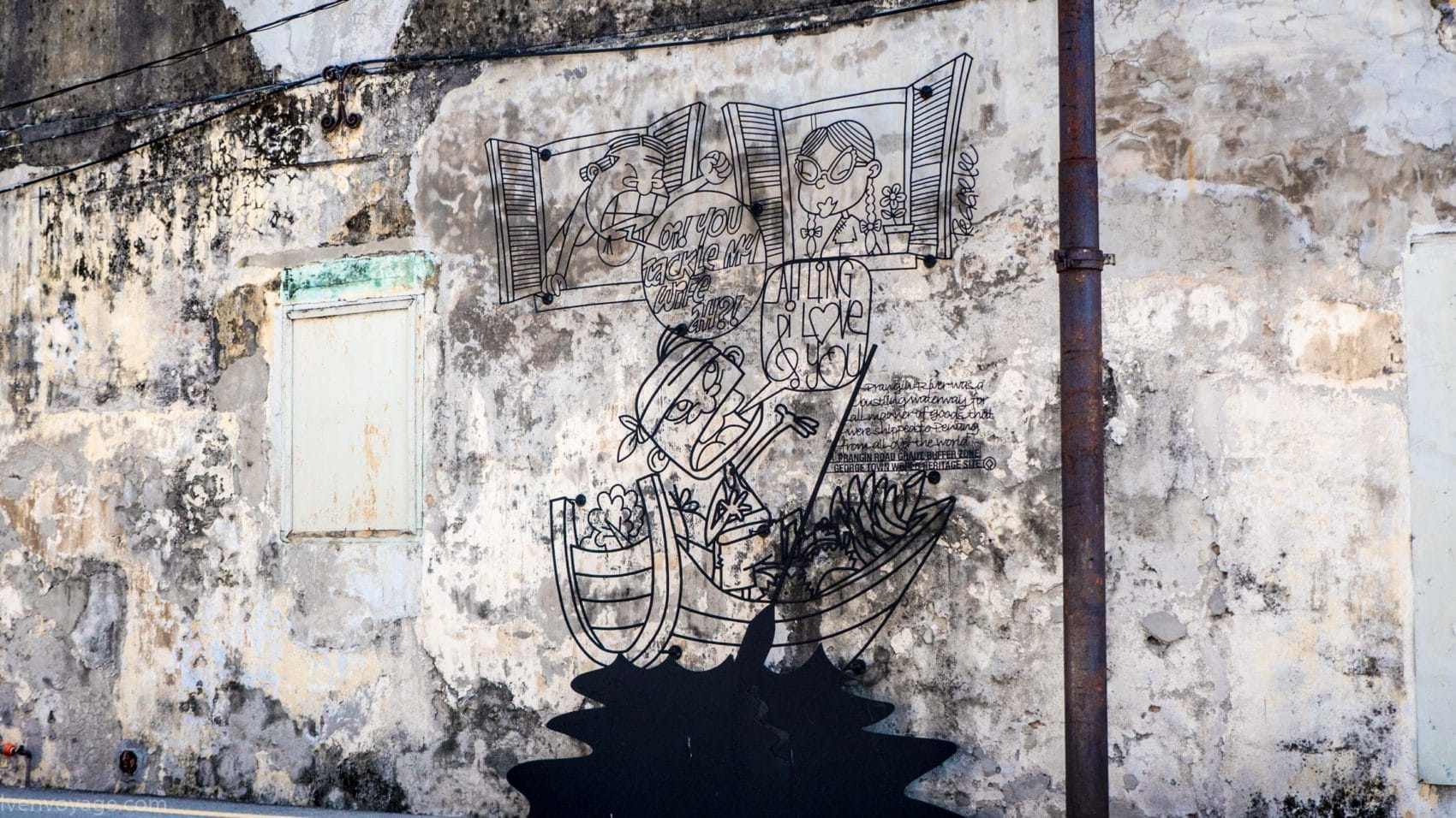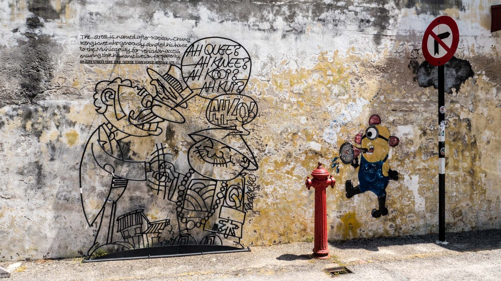 Chaque année au mois d’août les habitants célèbrent le George Town Festival pour honorer l’art, la culture et le patrimoine. Au cours du festival de 2012, l’artiste Ernest Zacharevic a été mandaté pour peindre ses créations, notamment la plus connue d’entre elles « Kids on Bicycle ». Ce projet a été un réel succès. Depuis, il a réalisé d’autres projets du même style dans différentes villes du monde entier (Hawaï, Lisbonne, Singapour…) et en a fait son métier. Touchant, non ?