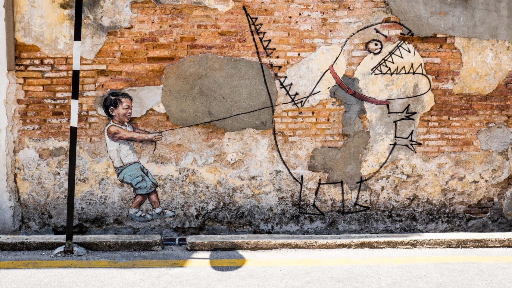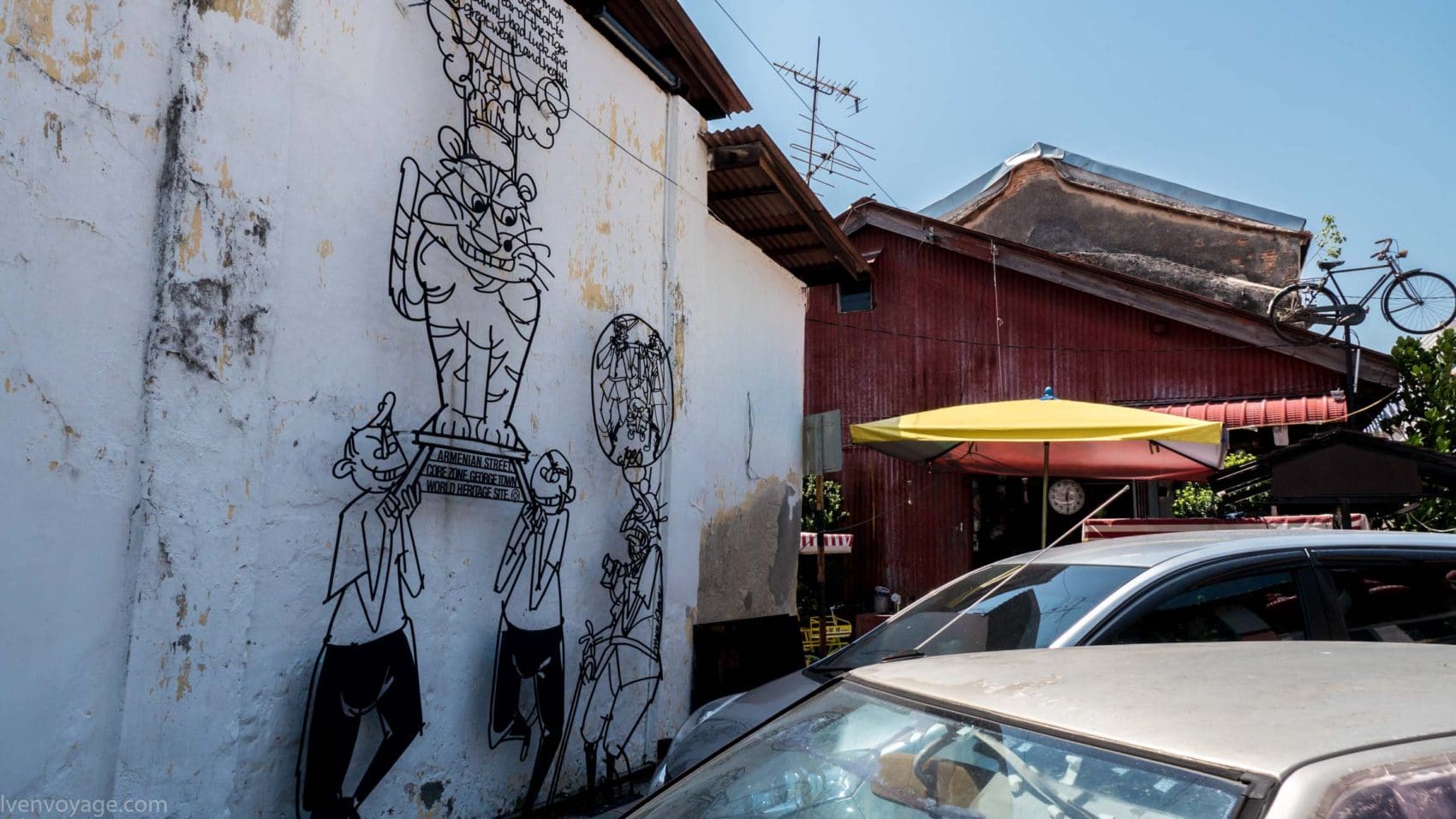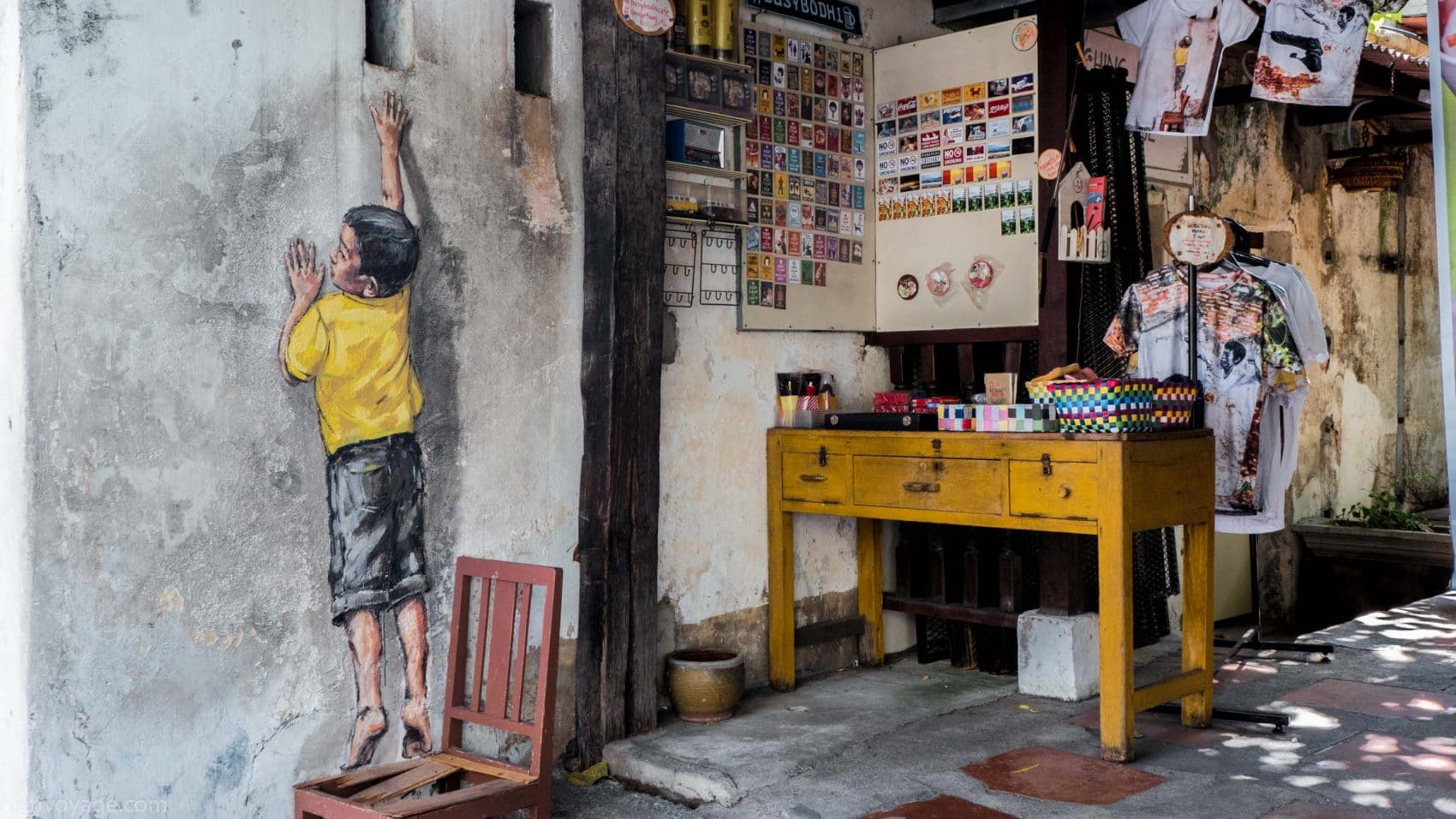 Chaque année au mois d’août les habitants célèbrent le George Town Festival pour honorer l’art, la culture et le patrimoine. Au cours du festival de 2012, l’artiste Ernest Zacharevic a été mandaté pour peindre ses créations, notamment la plus connue d’entre elles « Kids on Bicycle ». Ce projet a été un réel succès. Depuis, il a réalisé d’autres projets du même style dans différentes villes du monde entier (Hawaï, Lisbonne, Singapour…) et en a fait son métier. Touchant, non ?