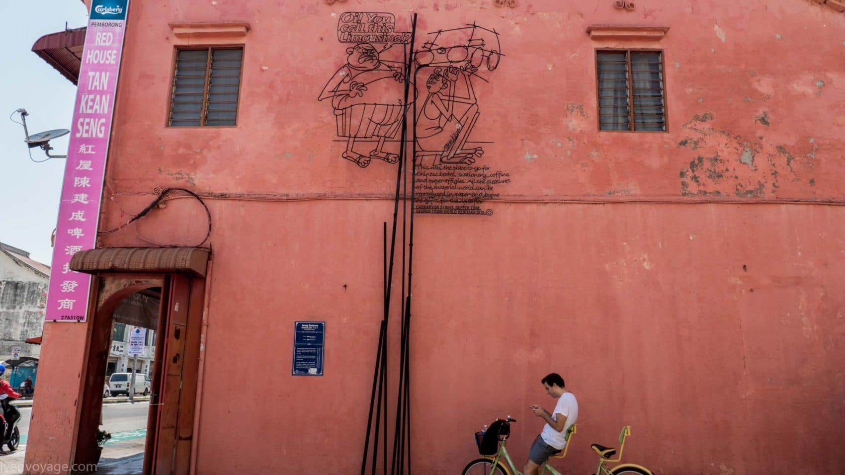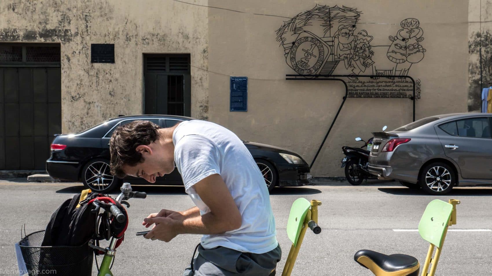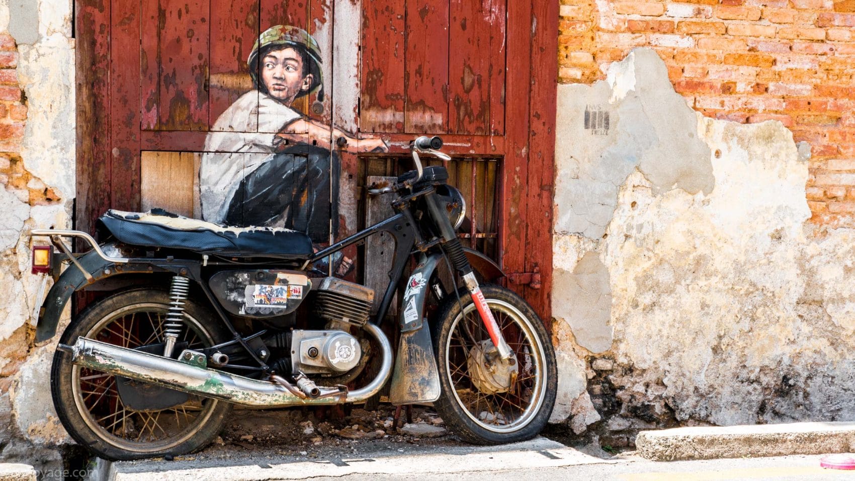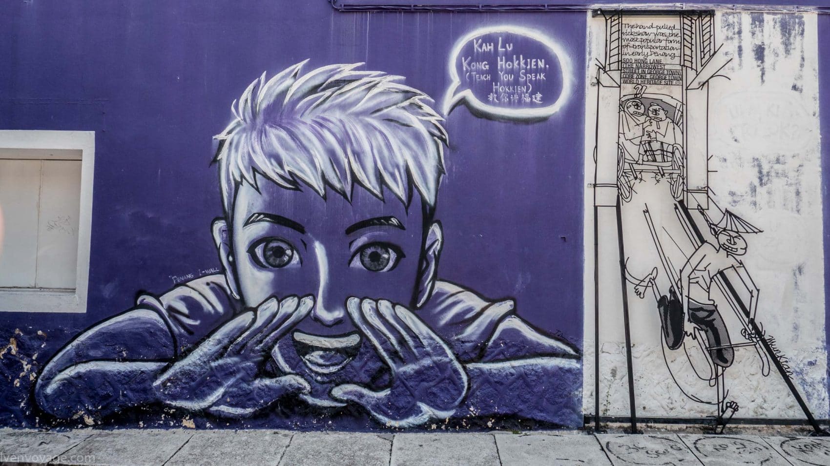 Chaque année au mois d’août les habitants célèbrent le George Town Festival pour honorer l’art, la culture et le patrimoine. Au cours du festival de 2012, l’artiste Ernest Zacharevic a été mandaté pour peindre ses créations, notamment la plus connue d’entre elles « Kids on Bicycle ». Ce projet a été un réel succès. Depuis, il a réalisé d’autres projets du même style dans différentes villes du monde entier (Hawaï, Lisbonne, Singapour…) et en a fait son métier. Touchant, non ?