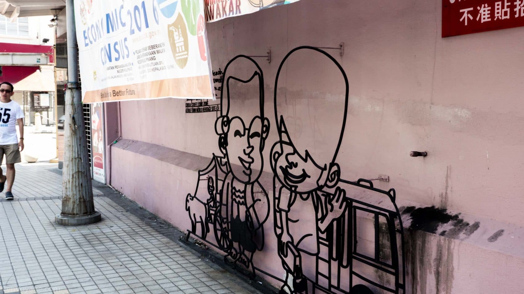 Le street art de George Town fait l’objet d’une visite à part entière. Les œuvres d’art font aujourd’hui partie intégrante du paysage urbain. Munis de leurs appareils les plus performants, les photographes sont à l’affût de chaque peinture ou sculpture qui bordent les routes. D’autres s’amusent à prendre la pose à côté pour garder un souvenir original. Très populaires, certaines de ces œuvres sont connues dans le monde entier.