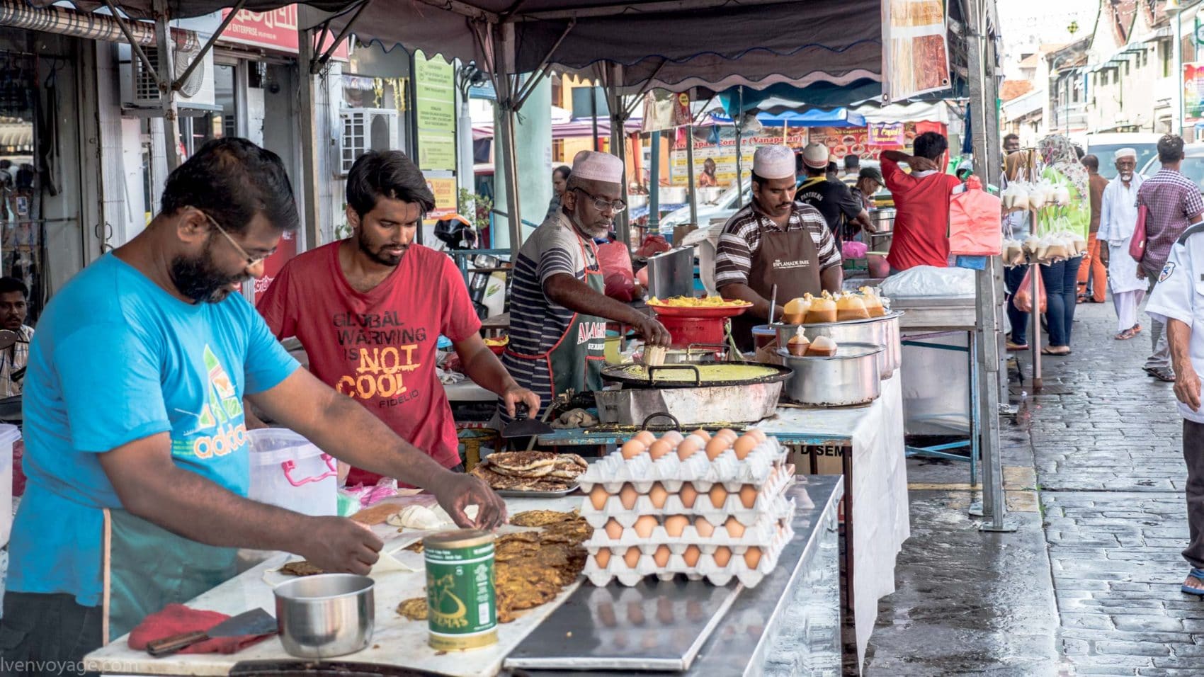 Ce quartier dynamique, composé principalement de population d’origine indienne, couvre 3 grandes rues : Lebuh Chulia, Lebuh Queen et Jalan Pasar. À l’intérieur de celles-ci, vous entendrez inévitablement cette musique traditionnelle qui anime tout Little india. Si vous avez l’ouïe fragile, évitez de passer à côté des haut-parleurs hurlants !