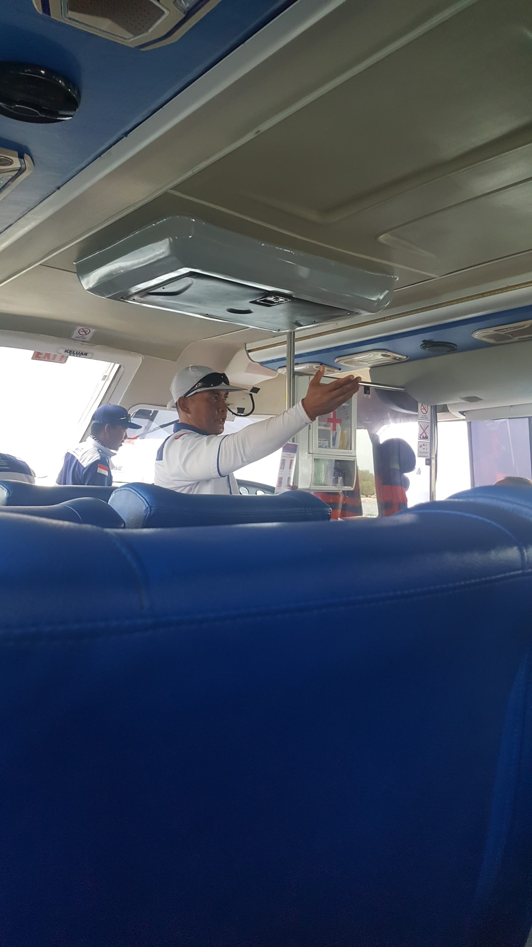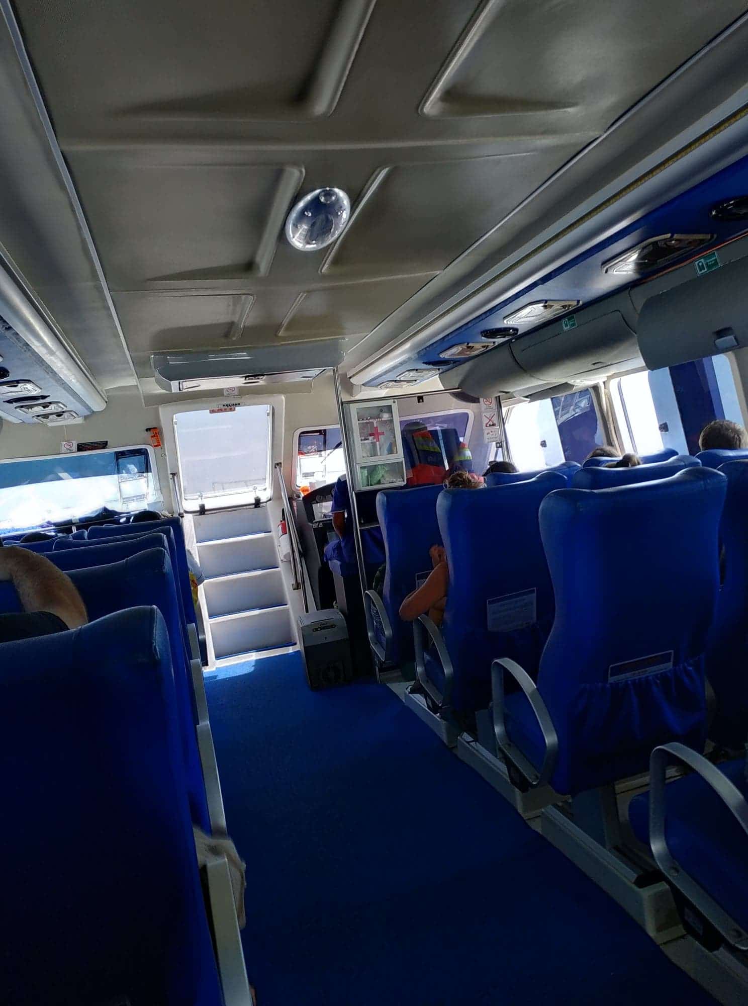 A l’intérieur du fast boat, se trouvent de grands fauteuils confortables. Une fois installés, des serviettes rafraîchissantes vous sont remises, ainsi qu’une bouteille d’eau. Le service est impeccable, avec un confort et une sécurité parfaite.