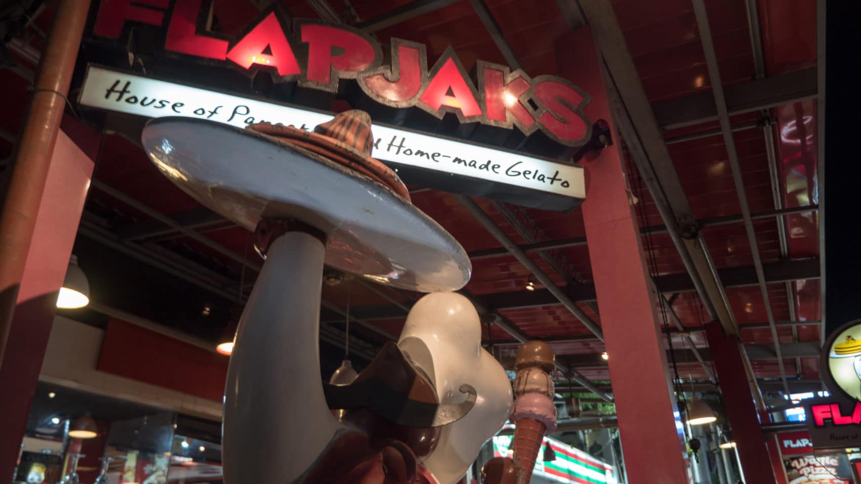 Tout le long de la rue, vous y trouvez les fast foods les plus connus, KFC et McDonald’s, avec des menus adaptés à la nourriture locale. Les frites sont remplacées par du riz blanc. Vous découvrirez aussi d’autres restaurants aux cuisines variées ainsi qu’un food court assez original. Une centaine de plats sont affichés au-dessus des stands. Il est difficile de faire un choix… !