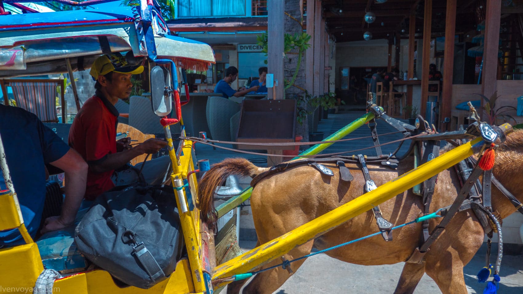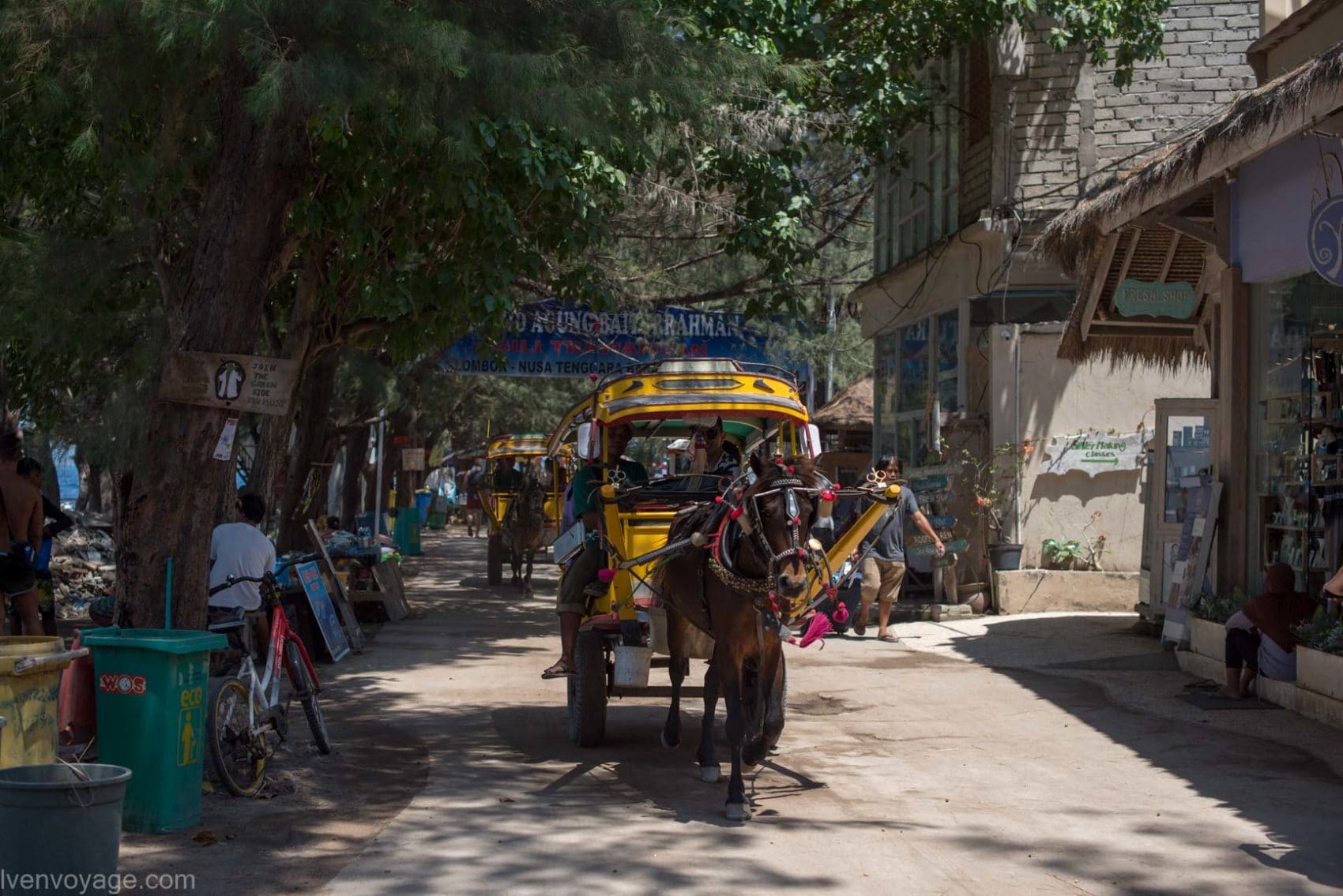 Sur les îles Gili, les déplacements se font soit à vélo, des locations sont possibles partout, soit à cidomos (calèches), il y en a toujours un qui vous attend.