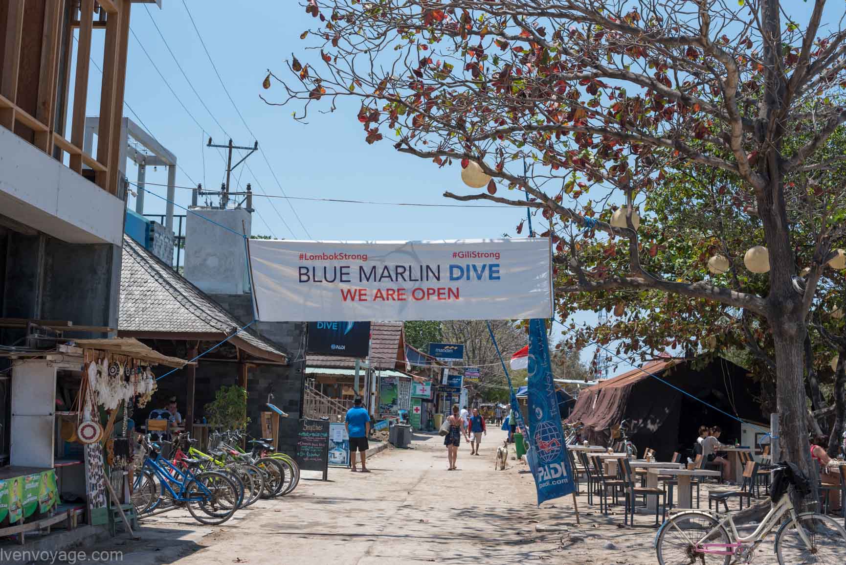 Dès septembre, il y avait déjà pas mal de touristes de retour sur Gili Trawangan mais on pouvait remarquer encore des maisons fissurées et certaines démolies. On peut alors imaginer à ce moment ce que les habitants ont dû traverser. Certains hôtels, restaurants et autres commerces touchés par les événements étaient encore en travaux mais pour la plupart leur réouverture est imminente.