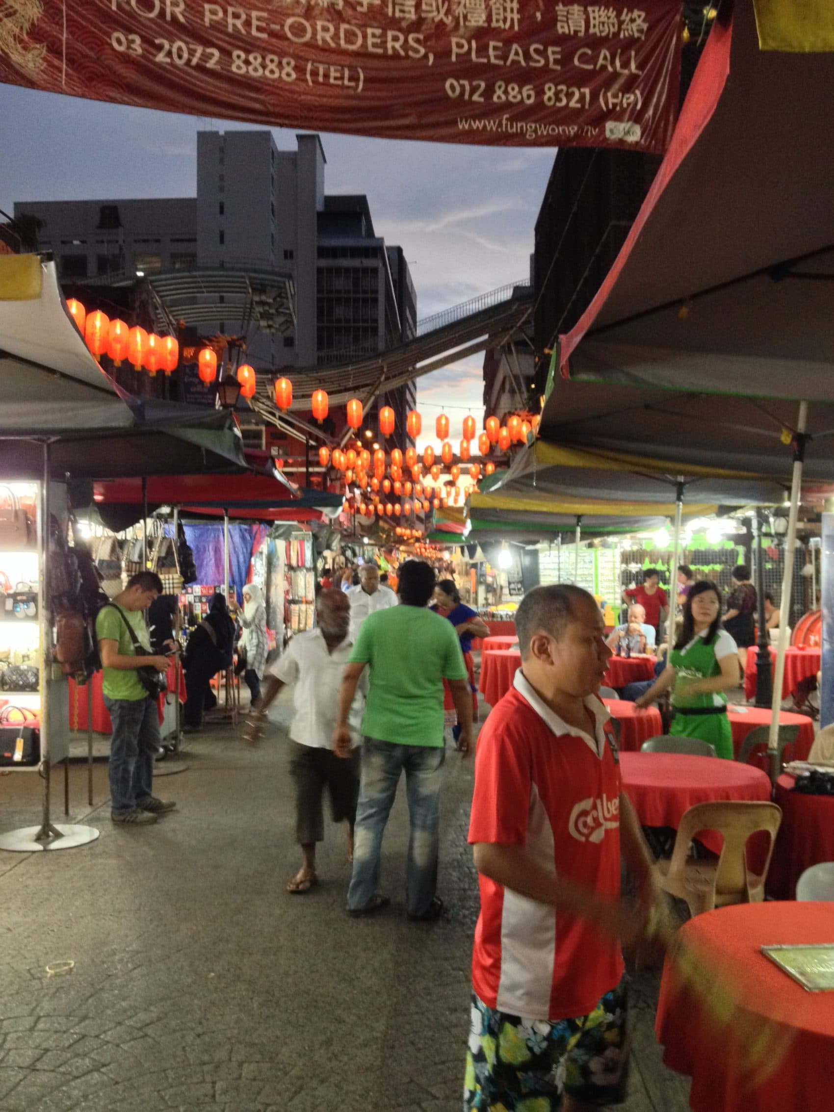 Le quartier chinois s’étale autour de la rue piétonne de Petaling. Ici se trouve le fameux marché aux puces où il y a toute une sélection de produits contrefaits, les répliques de grandes marques et certaines marchandises locales à des prix dérisoires.