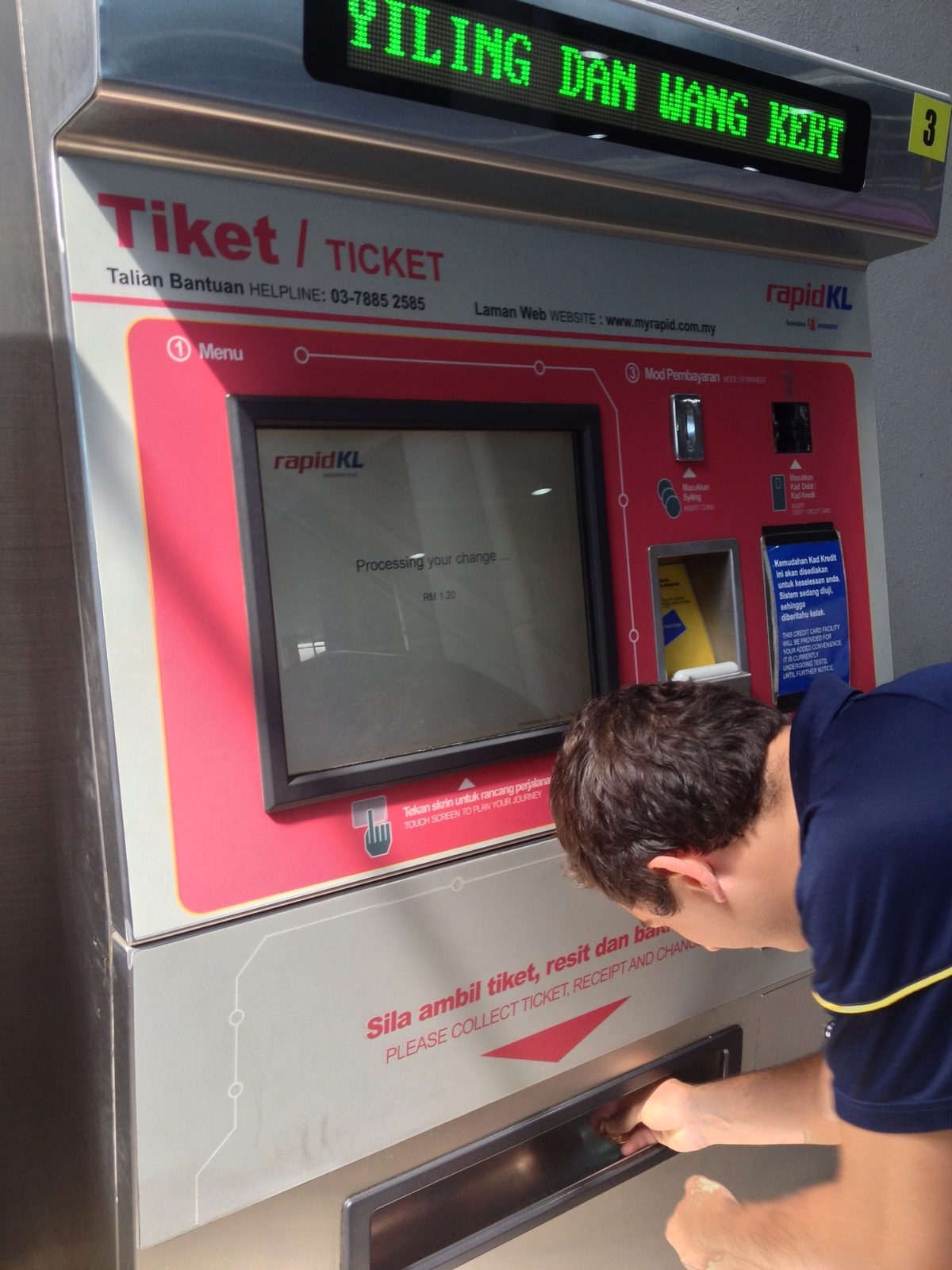 Les tarifs commencent à partir de RM1.20 pour un arrêt. Comme pour le métro, c’est un jeton qui vous est distribué soit par la borne automatique disponible dans chaque station ou donné par un vendeur au guichet. Il vous permet ensuite de passer les portiques pour vous rendre sur le quai.