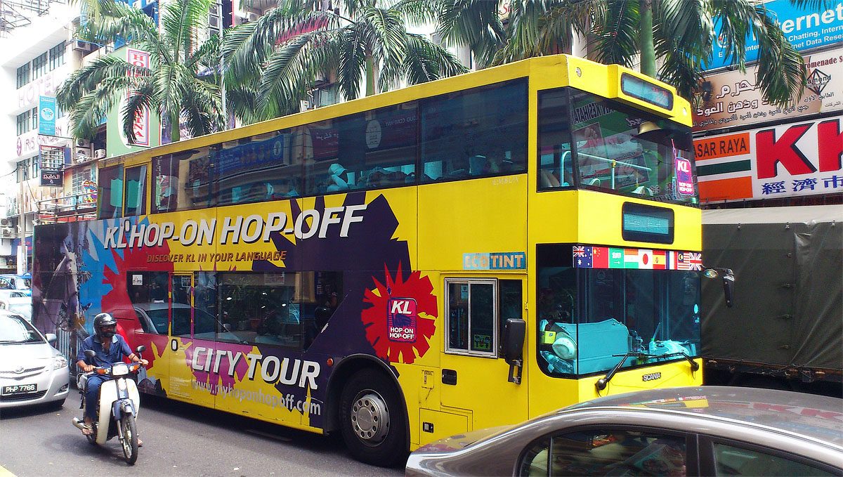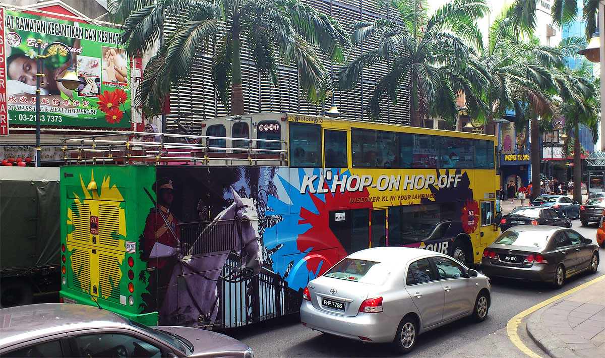 Il est possible de visiter la ville et s’arrêter aux principales attractions touristiques grâce au bus KL Hop on Hop Off. Un billet vous coûtera environ RM30 (environ 6 €) par personne et il est valable durant 24 heures.